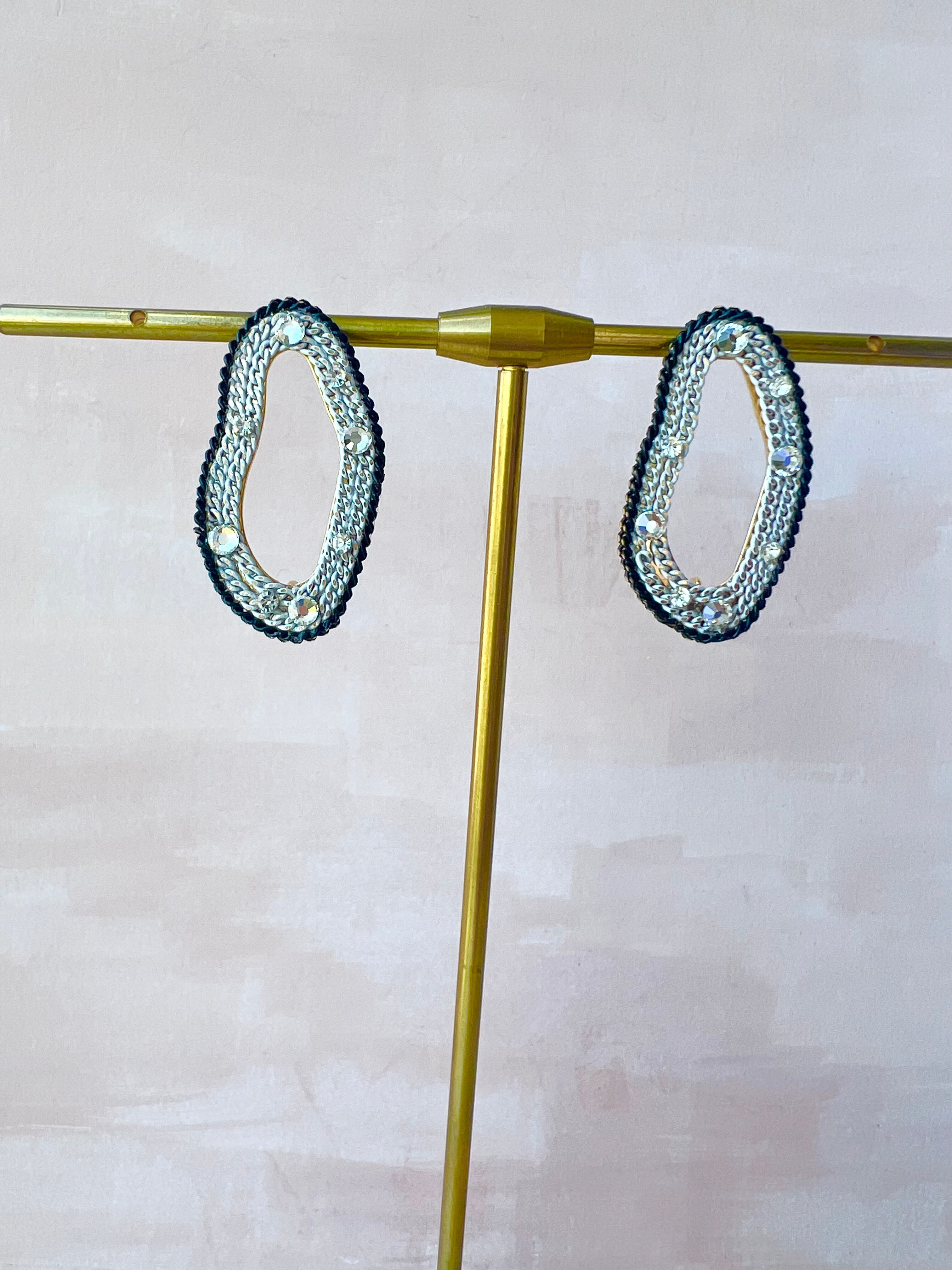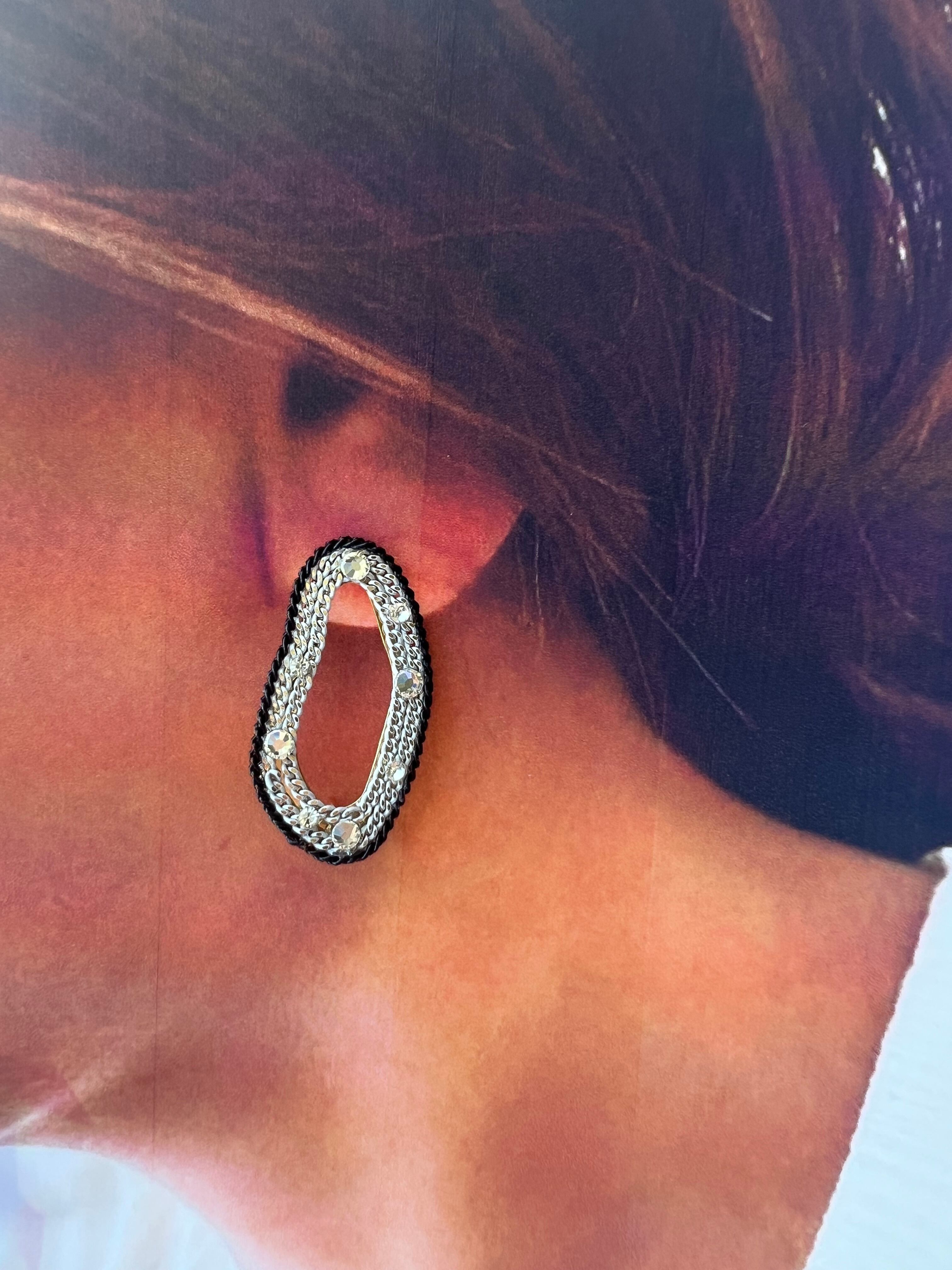 チェーンで縁取りラインストーンで存在感をプラス⭐︎ カラーはゴールドとブラックです。