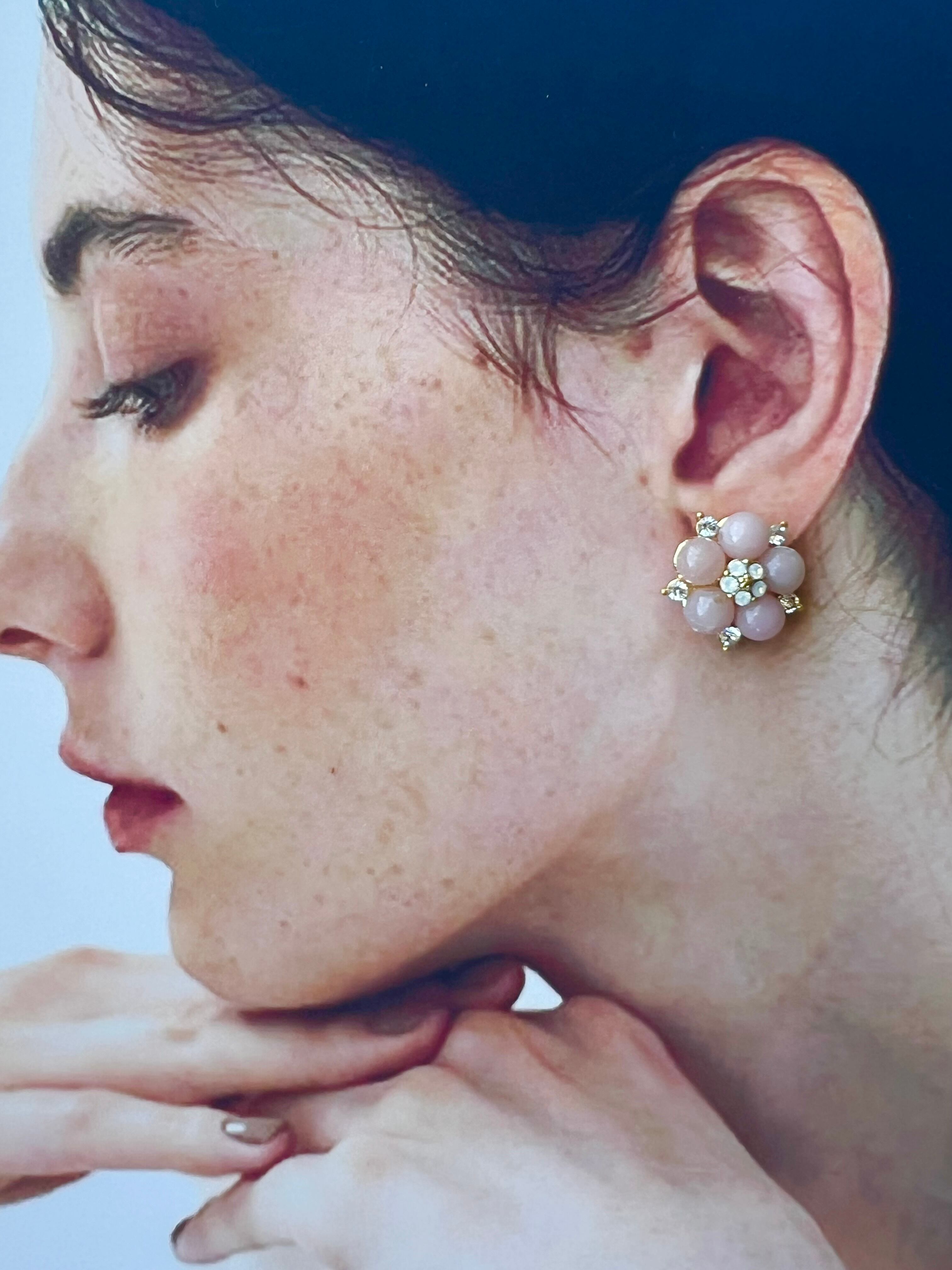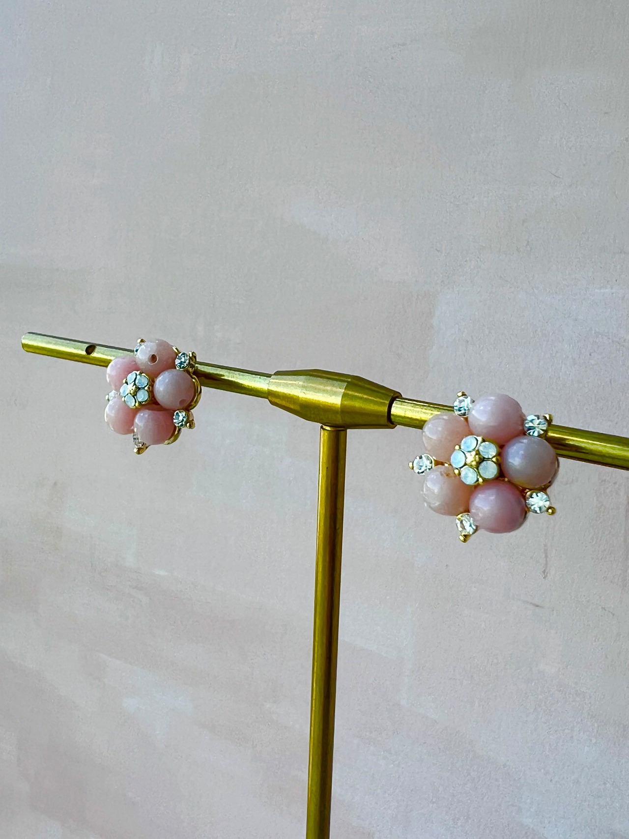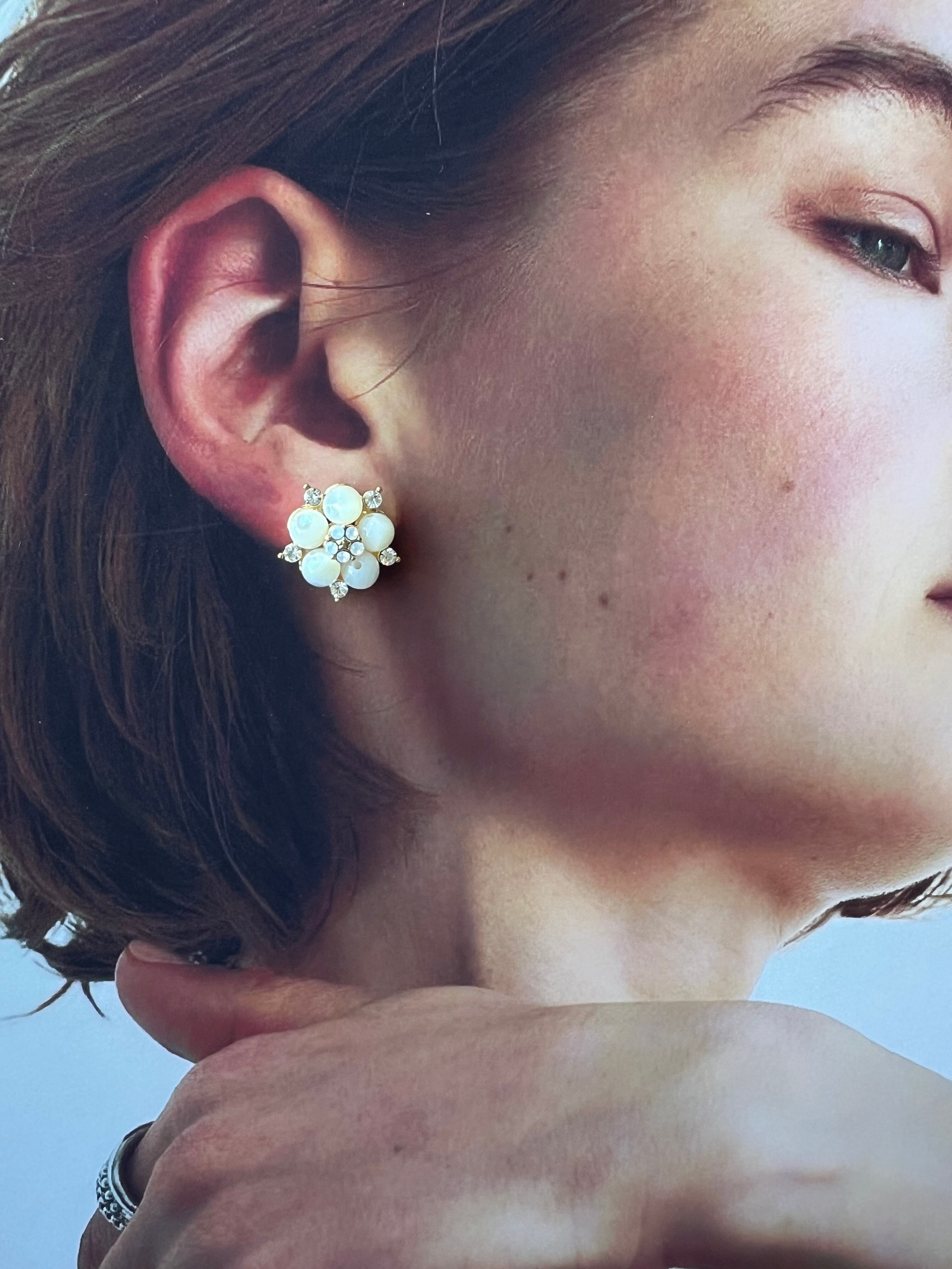 サクラの花びらのような美しいデザインのピアスです。小さいながらも存在感ある清楚なデザインです。 こちらはピアスのみです。 サイズ 1.5cm 素材 真鍮、ラインストーン、アクリルビーズ